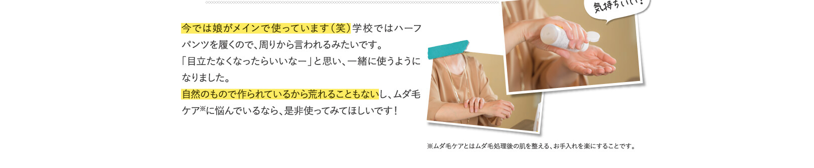 足・腕・ワキなど気になる部位に塗るだけでとっても簡単!